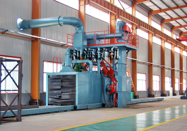 该系列通过式抛丸机主要用于型钢、金属结构件、网架、桥梁焊接件等,产品可以对原始状态的钢材表面施以强力抛丸,除掉其上的锈层、氧化皮,使之获得均匀一致的金属光泽,以提高钢材的涂饰质量与防腐效果。随着国家对环境污染的惩罚力度的加大,酸洗清理已经逐渐被市场淘汰,钢结构抛丸机会得到越来越多行业领域应用。钢结构抛丸机的抛丸室体及抛丸器的布置方式经计算机三维动态抛射仿真后确定。
